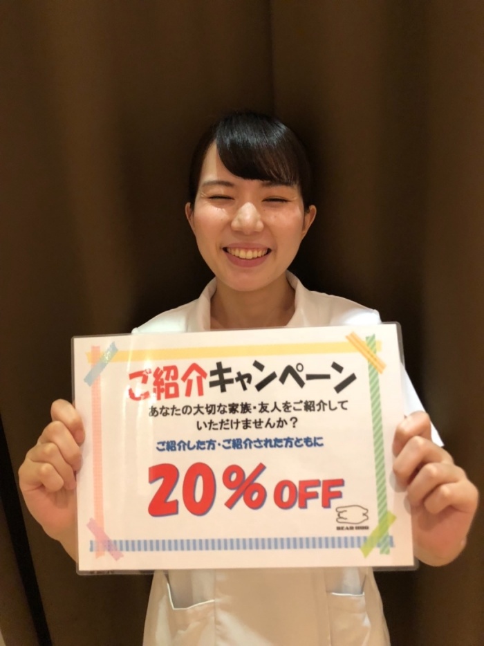 いつもご覧頂きありがとうございます! ベアハグイオンモール和歌山店の中口ですぅ(^^) 今日はお得な紹介キャンペーンのご紹介でーす★ 今、お客様の大切なご友人やご家族を紹介して頂きますと20%OFFになります!! 紹介していただいた方も紹介された方もお得となっております^ ^ ぜひ貴方の大切な人を私たちにご紹介くださいませ!!!